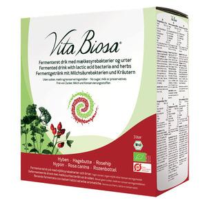 Vita Biosa Hyben bag-in-box Ø – 3 ltr Få dit daglige tilskud af mælkesyrebakterier ved at drikke 20-30 ml Vita Biosa Hyben hver dag! Vita Biosa Hyben er en økologisk urtedrik med millioner af levende mælkesyrebakterier og med smag af urter og hyben. Mælke (Læs mere)